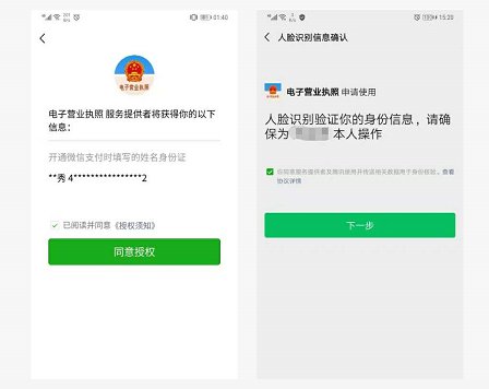 1.输入微信支付密码,获取微信账号的实名信息,包括姓名和证件号码,再进行人脸识别,完成实名认证。只有通过实名认证才可以下载执照;如果实名认证不通过,需要到当地的市场监督部门下载电子营业执照。