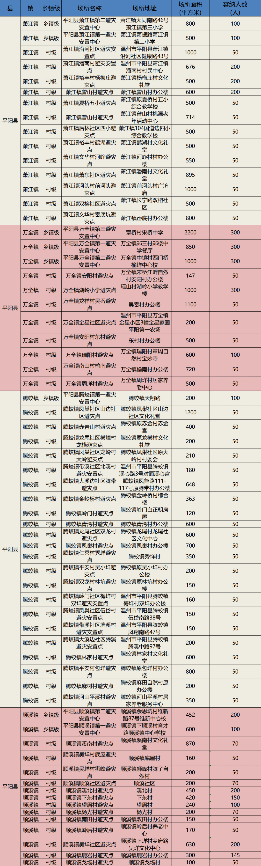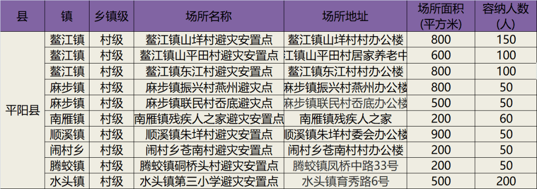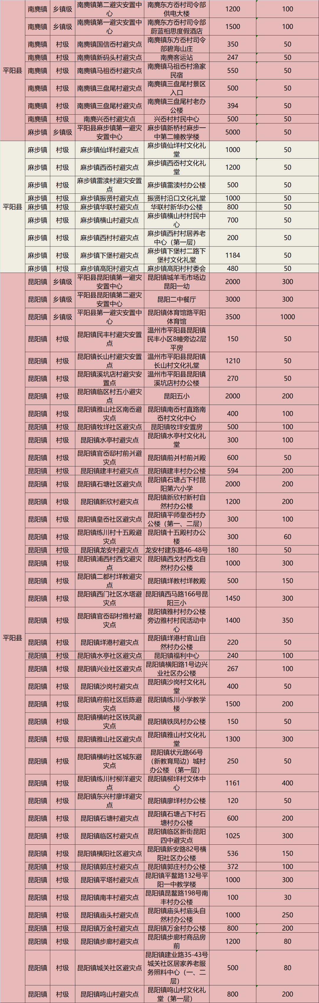 温州平阳282个避灾安置点地址一览