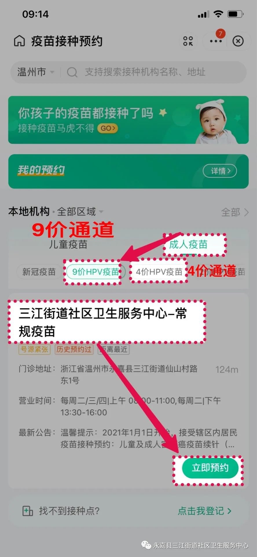 2022年温州永嘉三江街道社区九价疫苗预约指南(1月15日晚上8:00)