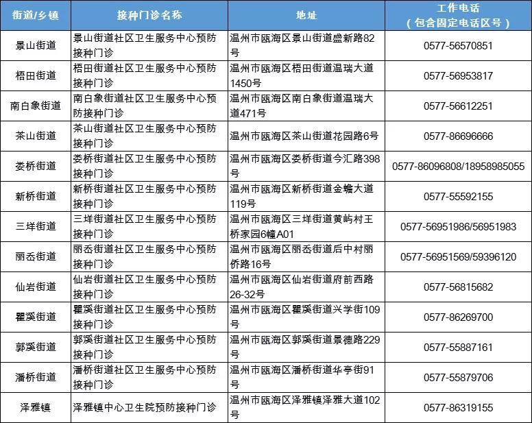 2021温州瓯海流感疫苗预约接种门诊及联系方式