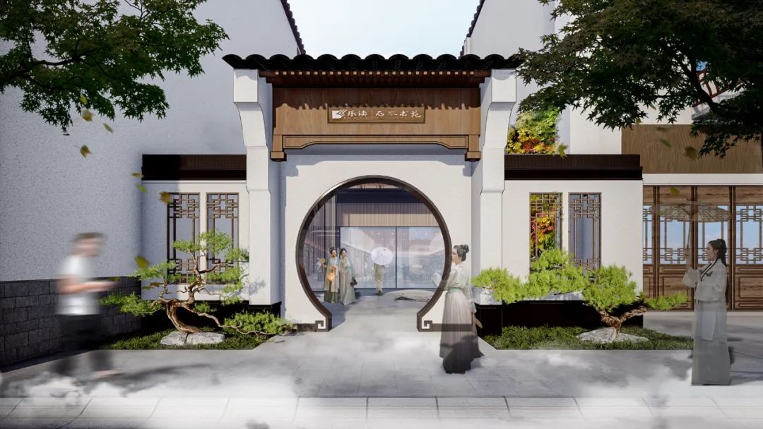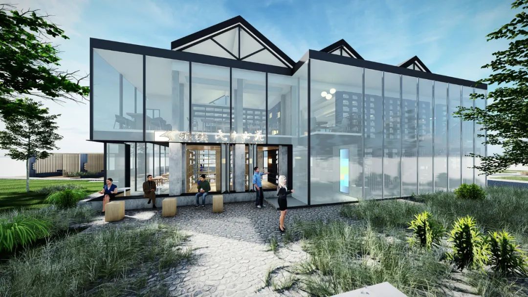 位于丹霞小区内,总建筑面积360平方米,藏书1万册。书苑以“山石林木”为设计手法,一楼四周为玻璃幕墙,把室外园林映入室内空间,入口贯穿到对景的河道,形成社区生活会客厅模式,为社区居民提供精神栖息的港湾。