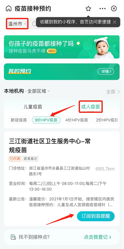 温州永嘉三江社区卫生中心九价HPV疫苗到苗(9月19日20:00开抢)