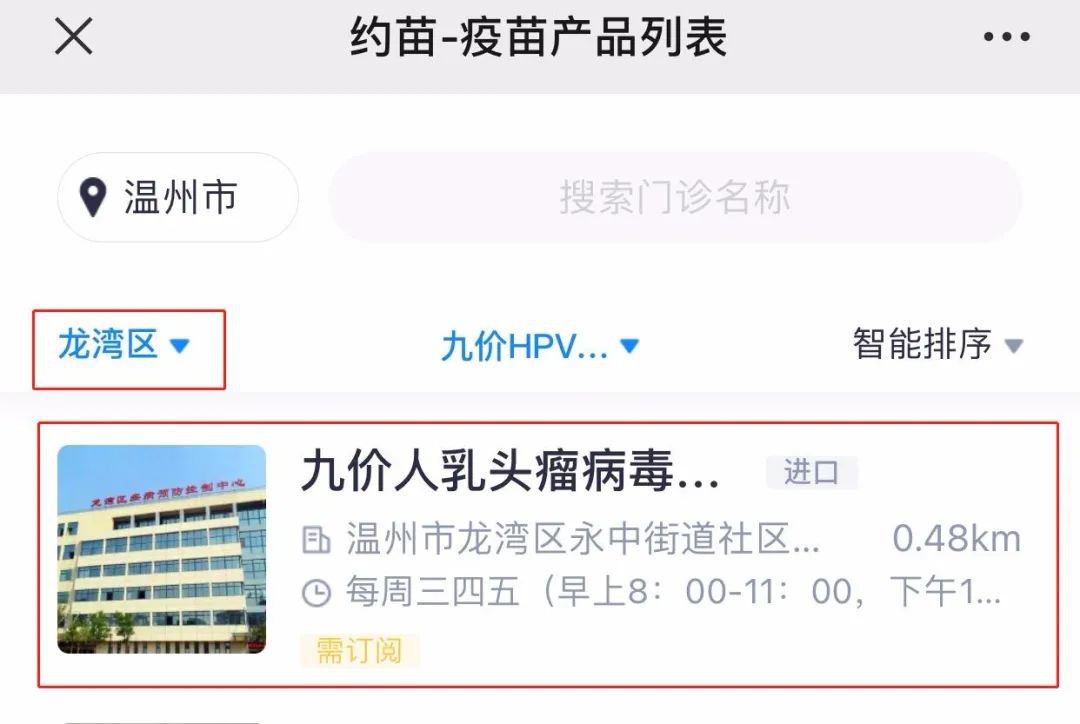 温州龙湾永中社区卫生中心九价HPV疫苗恢复订阅排队