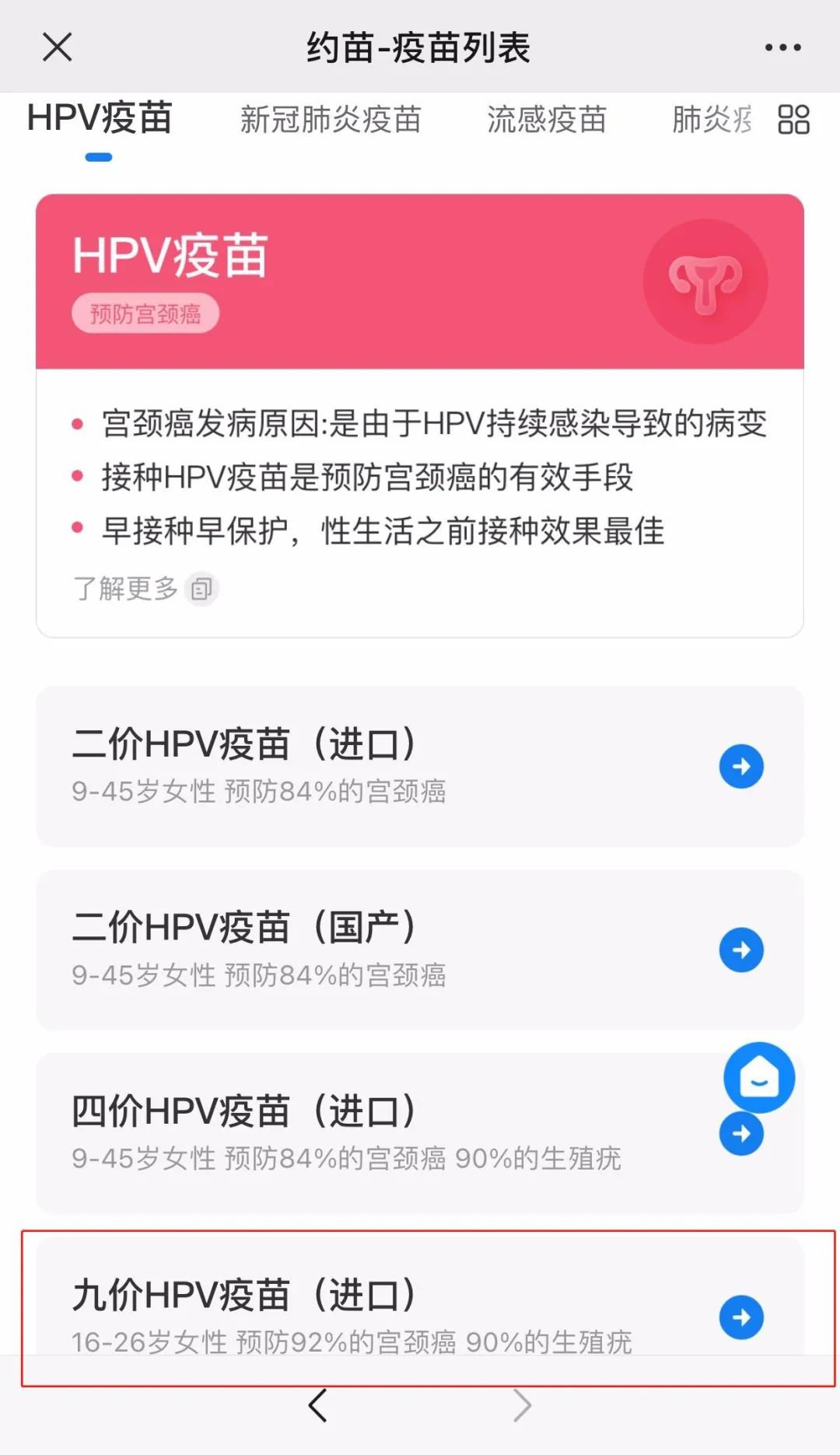 “九价”宫颈癌疫苗现已恢复订阅排队,详细预约操作流程请参照以下步骤: