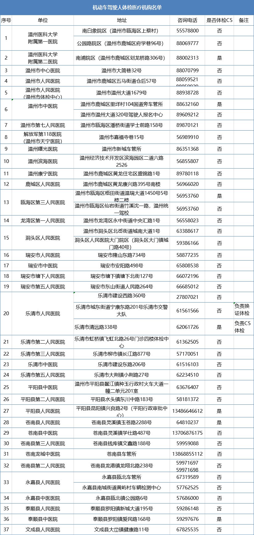 温州驾照体检指定有几家医院(温州市驾照体检指定医院)