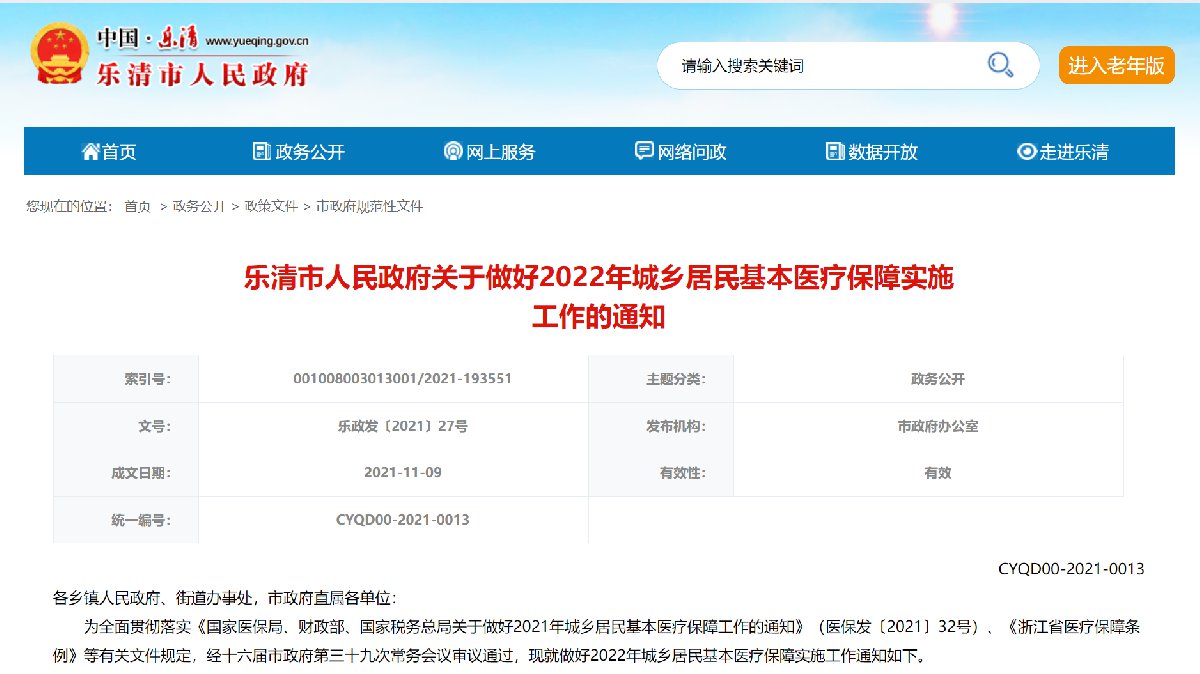 乐清做好2022年城乡居民基本医疗保障实施工作的通知