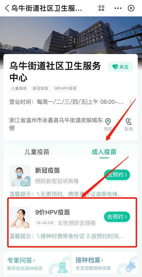2021温州永嘉乌牛街道社区卫生服务中心9价疫苗预约攻略