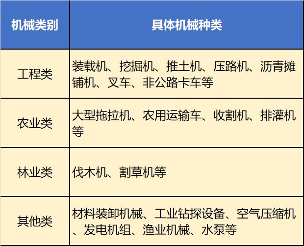 我们还为您整理了非道路移动机械完整分类表,如果您还不明白的话,概括成一句话就是:烧柴油的、会移动的、不上汽车牌照的机械