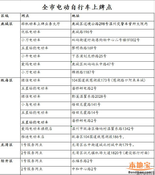 温州电动车上牌点汇总 温州市区电动车上牌地点
