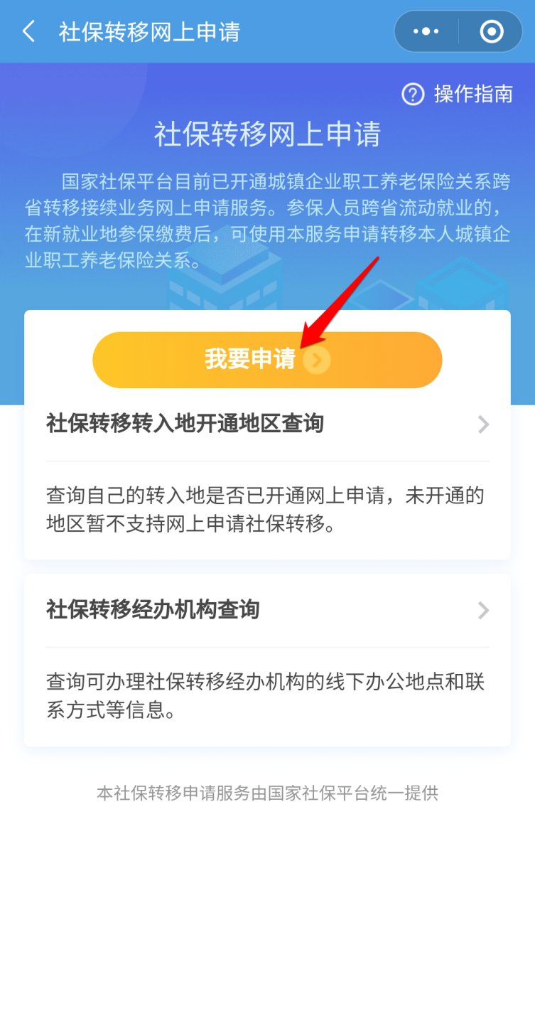 目前大部分省份已经开通社保转移网上申请,点击“我要申请”进入申请界面。