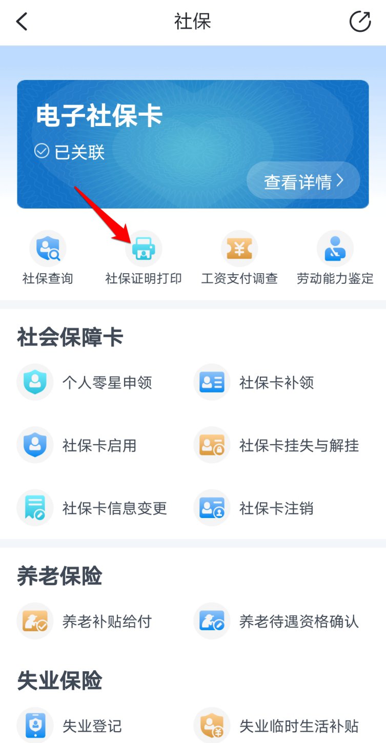 点击“社保证明打印”。