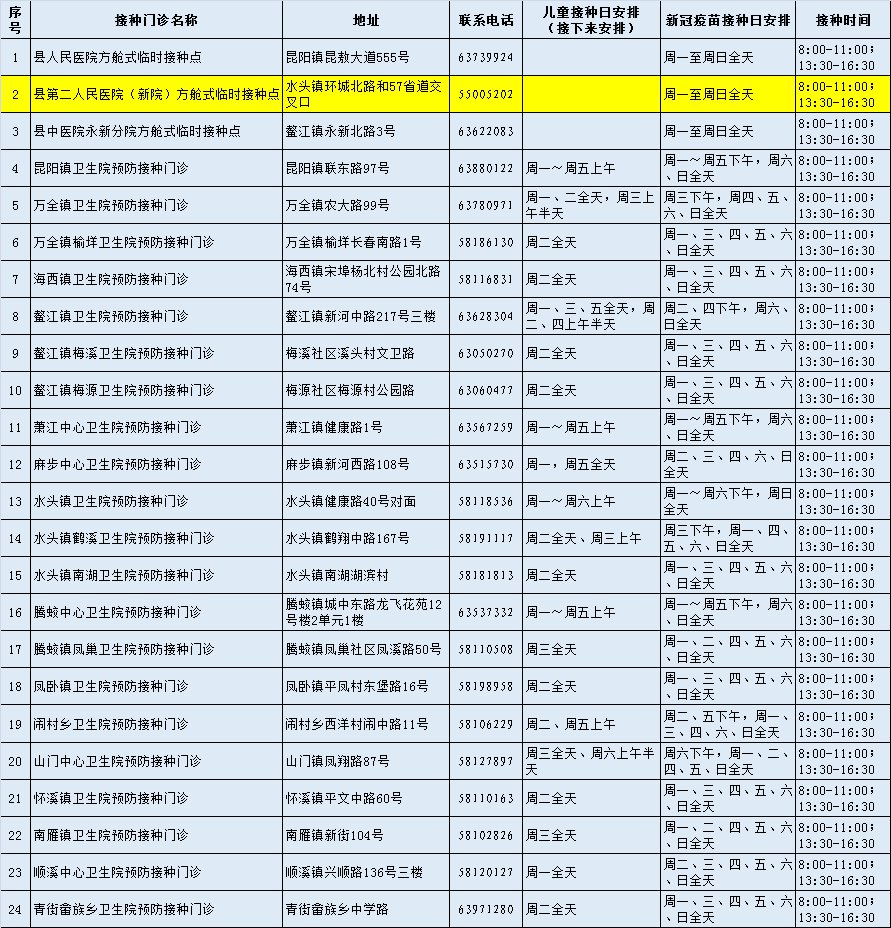 目前该批疫苗已全部分配至3个县级医院方舱式临时接种点、21个乡镇卫生院预防接种门诊。(注:县第二人民医院方舱式临时接种点地址更改为新院住院楼一楼)