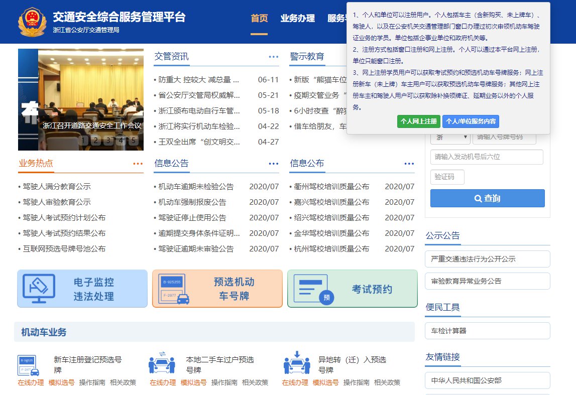 1.登录浙江省公安厅交通管理局官网(https://zj.122.gov.cn/)