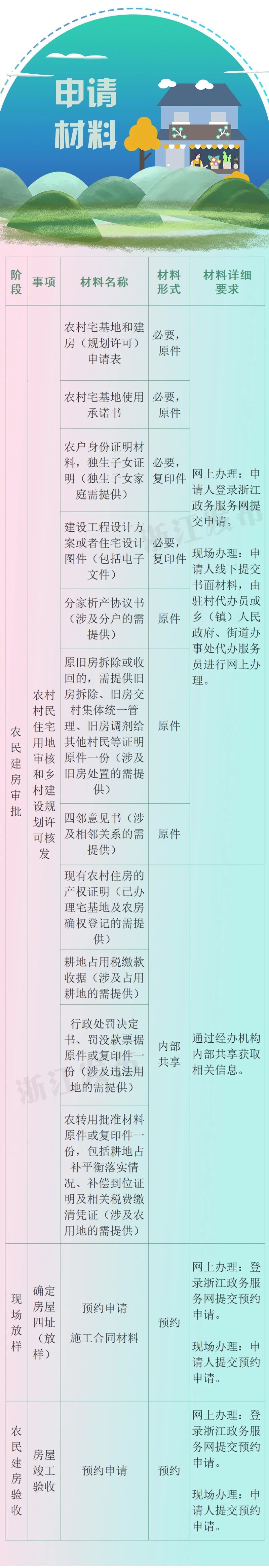 为加强农村宅基地及农民建房审批管理,近日,浙江省农业农村厅、浙江省自然资源厅、浙江省住房和城乡建设厅联合印发《农民建房“一件事”办事指南(2020年修订版)》。