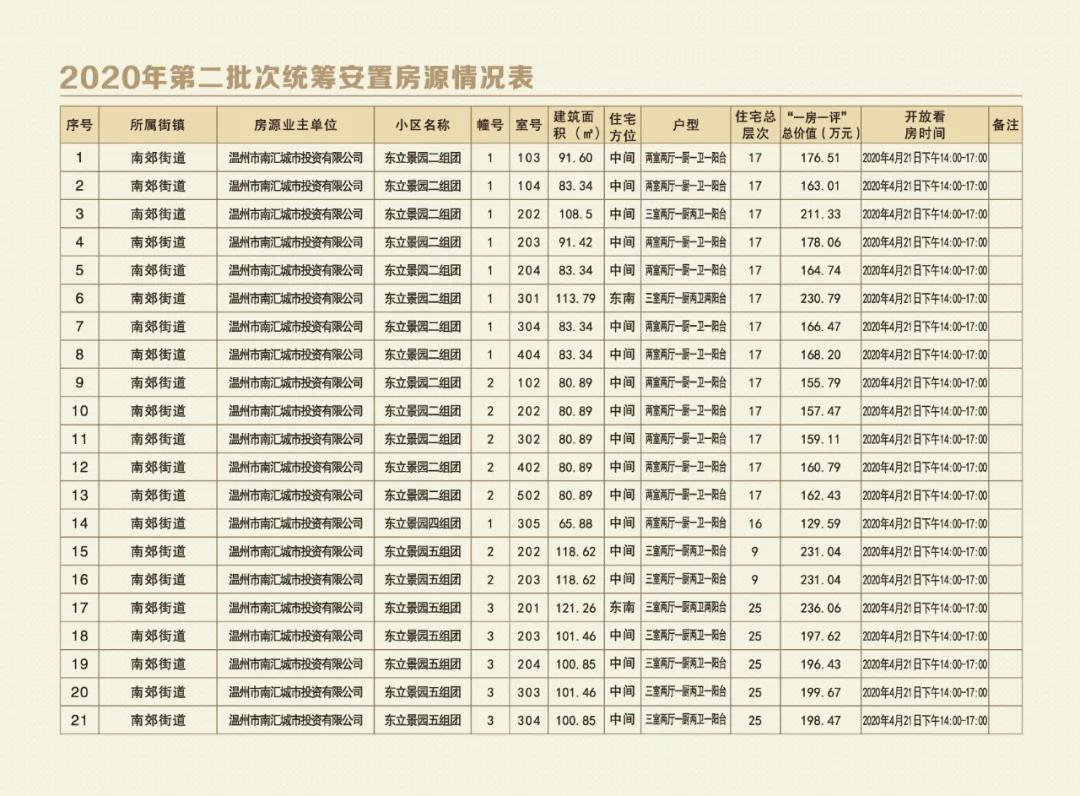 2020年温州鹿城安置房房源信息一览表 2020年温州鹿城安置房房源信息一览表图片