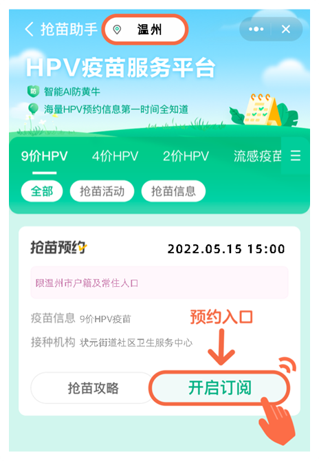 2022年温州龙湾区状元街道社区卫生服务中心50人份九价HPV疫苗将于 5月15日 15:00 在医鹿App开放线上预约!限温州户籍及常住人口,包三针!