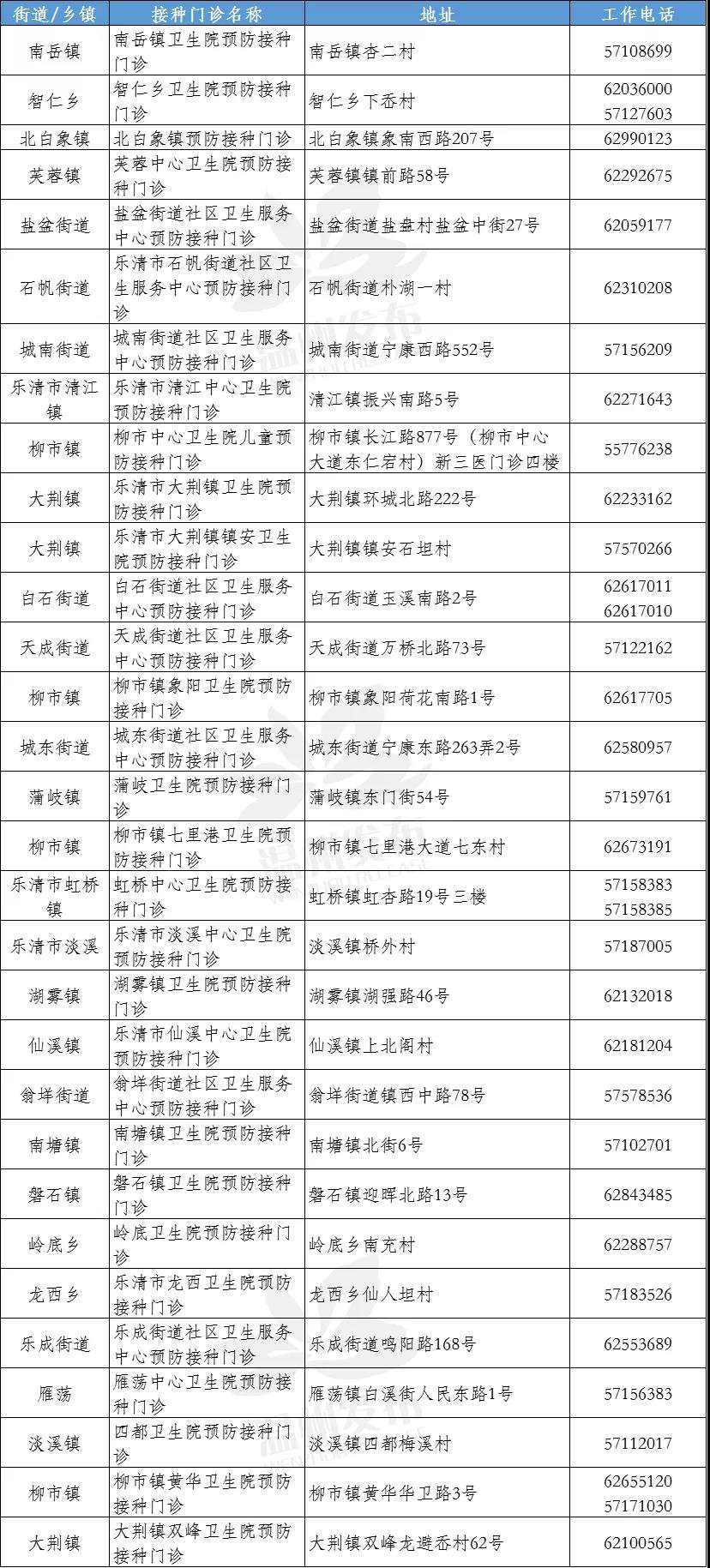 温州乐清新冠疫苗免费接种点地址+电话一览