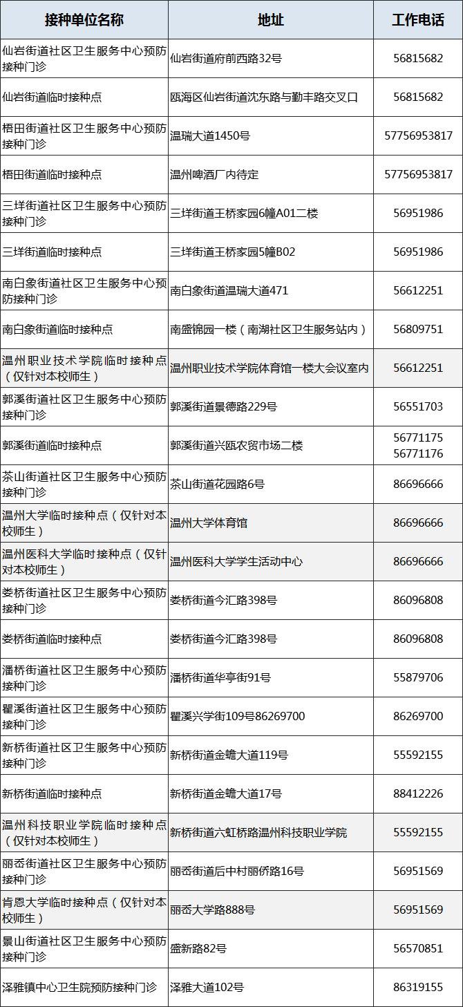 温州各区县新冠疫苗免费接种点地址一览
