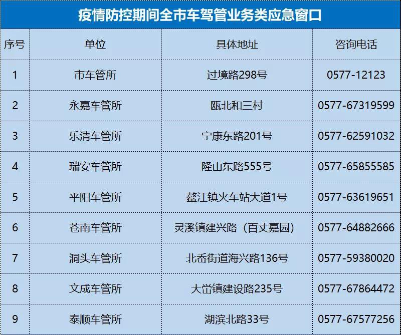 全市各交通违法处理、车驾管服务、事故调解等窗口继续暂停服务,同时开通应急窗口(详见下图)提供“预约办”服务,确保及时、高效办理疫情防控应急车辆和驾驶人牌证,全力保障疫情防控应急车辆出行便利。个人或企业如有特殊情况确需到窗口现场办理的,可以在工作时间拨打电话预约,再前往指定应急窗口办理。上述窗口恢复时间另行公告。
