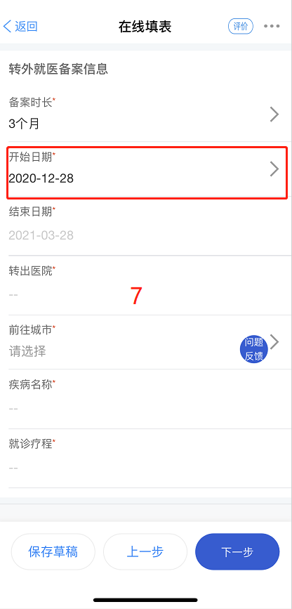第五步:填写转外就医备案信息,需要注意的是,备案需要提前一至二个工作日,并选择本地就医转出医院。疾病名称无法精确描述的,可以选择相关疾病。例如:“眼睑下垂”,在疾病选项中无法搜索,则可选择“眼睑框隔脂肪增多症”或者与影响视力有关的其他病症。