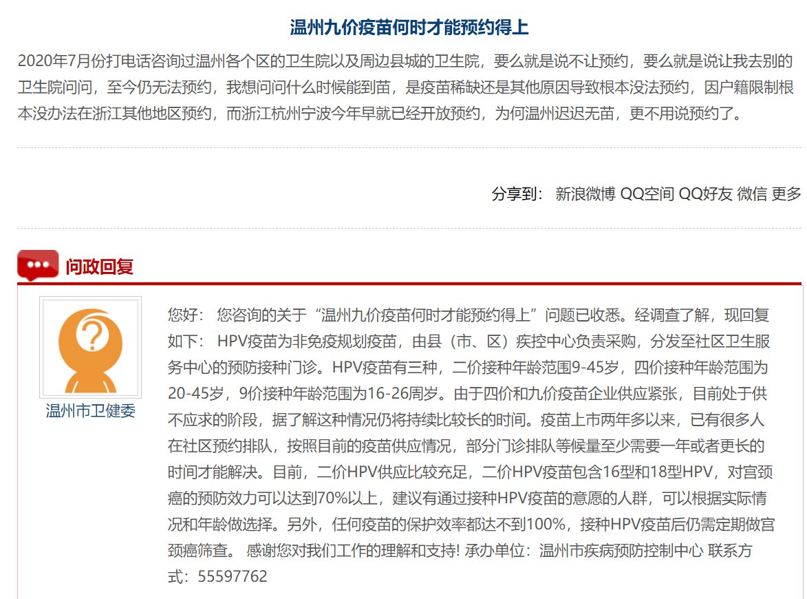 2021温州九价疫苗何时才能预约得上?