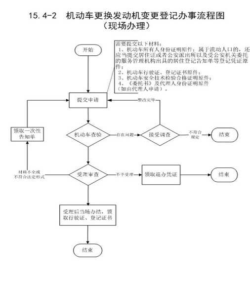 (一)车辆至检验机构检测;(二)车辆查验;(三)业务受理;(四)领取机动车登记证书、行驶证。
