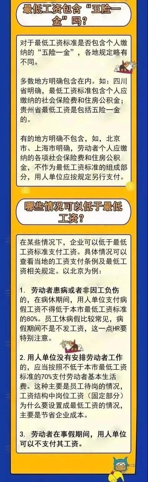 最低工资标准是否包含五险一金、哪些情况可以低于最低工资标准发工资?具体来看: