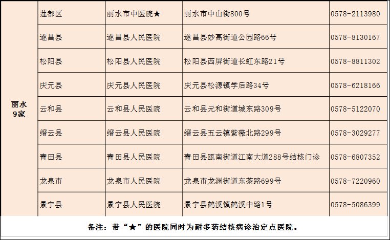 结核病属于呼吸道传染病,为让结核病患者得到科学规范的治疗,浙江省在11个地市设了89家结核病定点医院。为了方便有需要的人就近治疗或咨询,我们对所有医院的信息进行了梳理,地址、电话等信息统统都有。