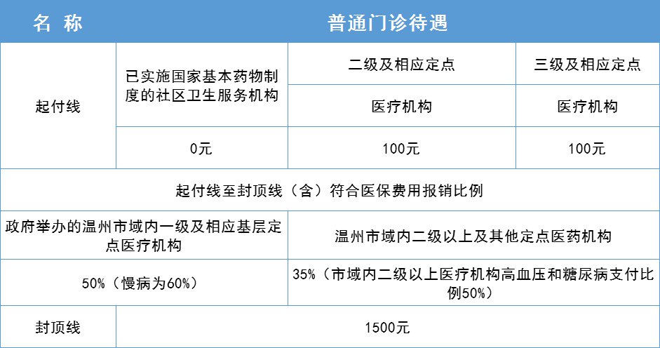 温州市域内二级以上及其他定点医疗机构普通门诊刷卡报销比例由20%提高为35%。市域内二级以上医疗机构高血压和糖尿病药品支付比例由20%提高为50%。