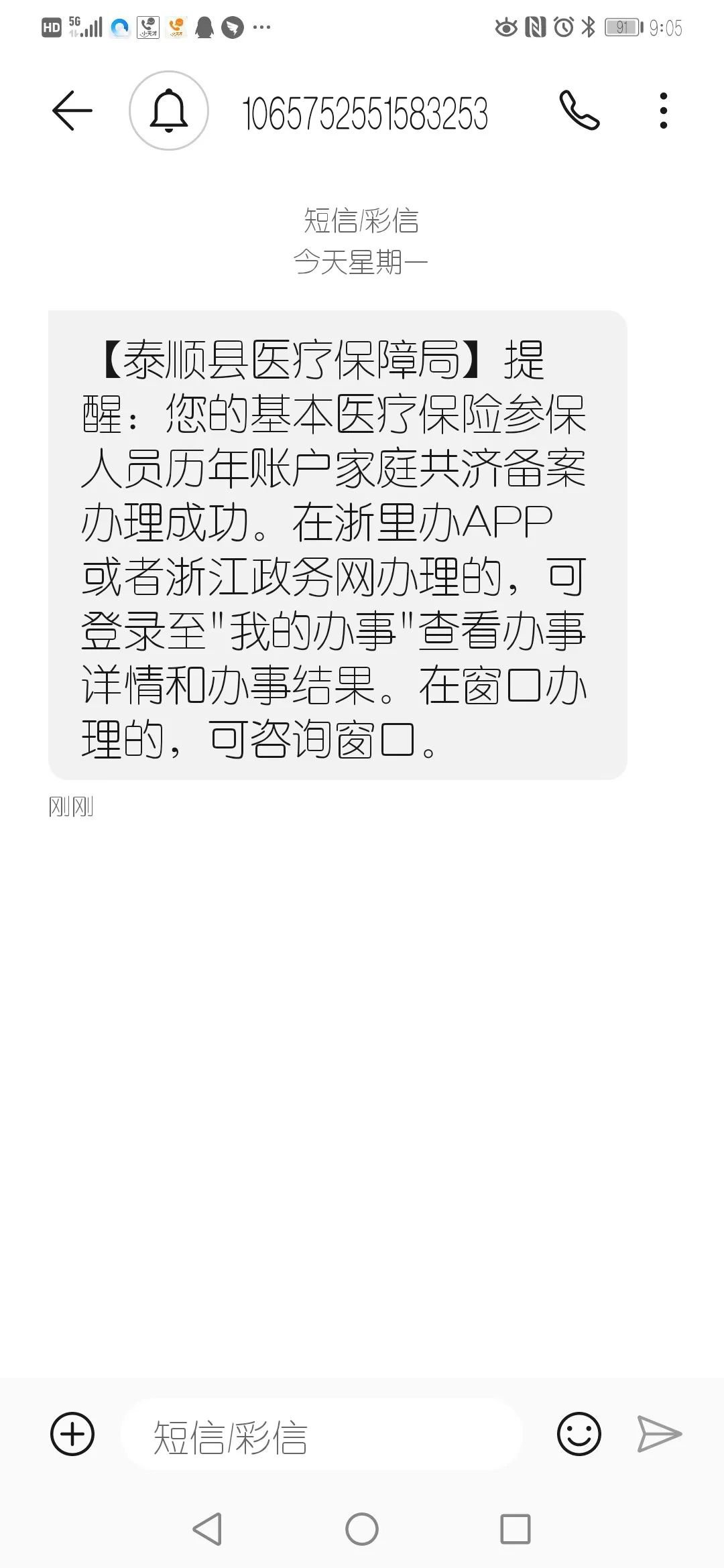 这样便完成家庭共济操作,并会有短信提醒业务办理成功。