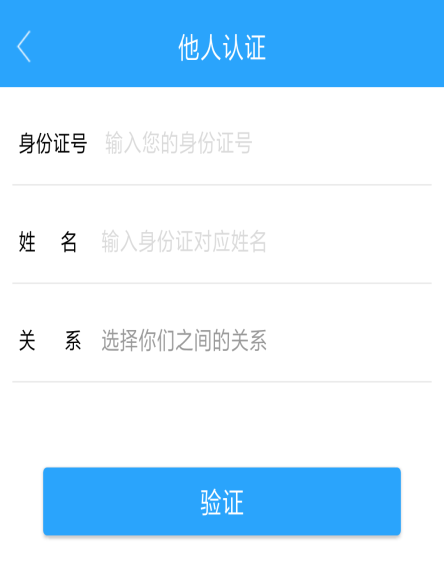 如上图所示,填写他人身份证号、姓名、两人关系。