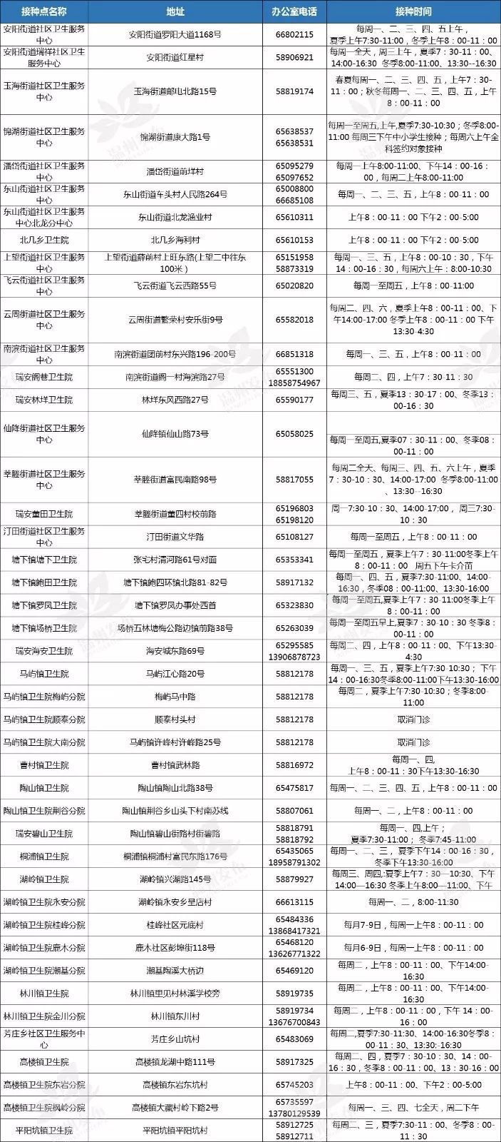 温州部分区县社区卫生院有到苗信息!大伙儿可以关注就近卫生院到苗信息!