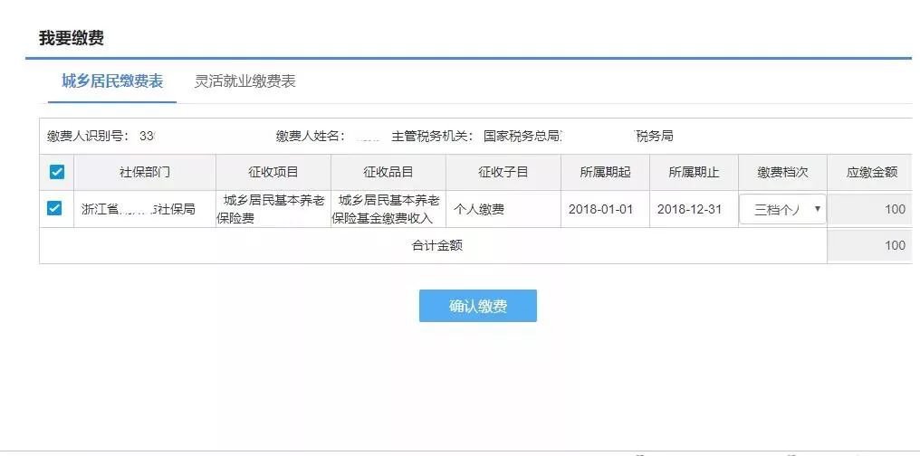点击左侧任务栏【我为自己缴费】,按自己的参保类别选择城乡居民缴费表或者灵活就业缴费表,显示应缴费信息。勾选信息后,点击【确认缴费】,选择支付宝或者微信(开通中)进行扫码缴费。缴费完成后,弹出支付成功提示,可点击开具缴费凭证。