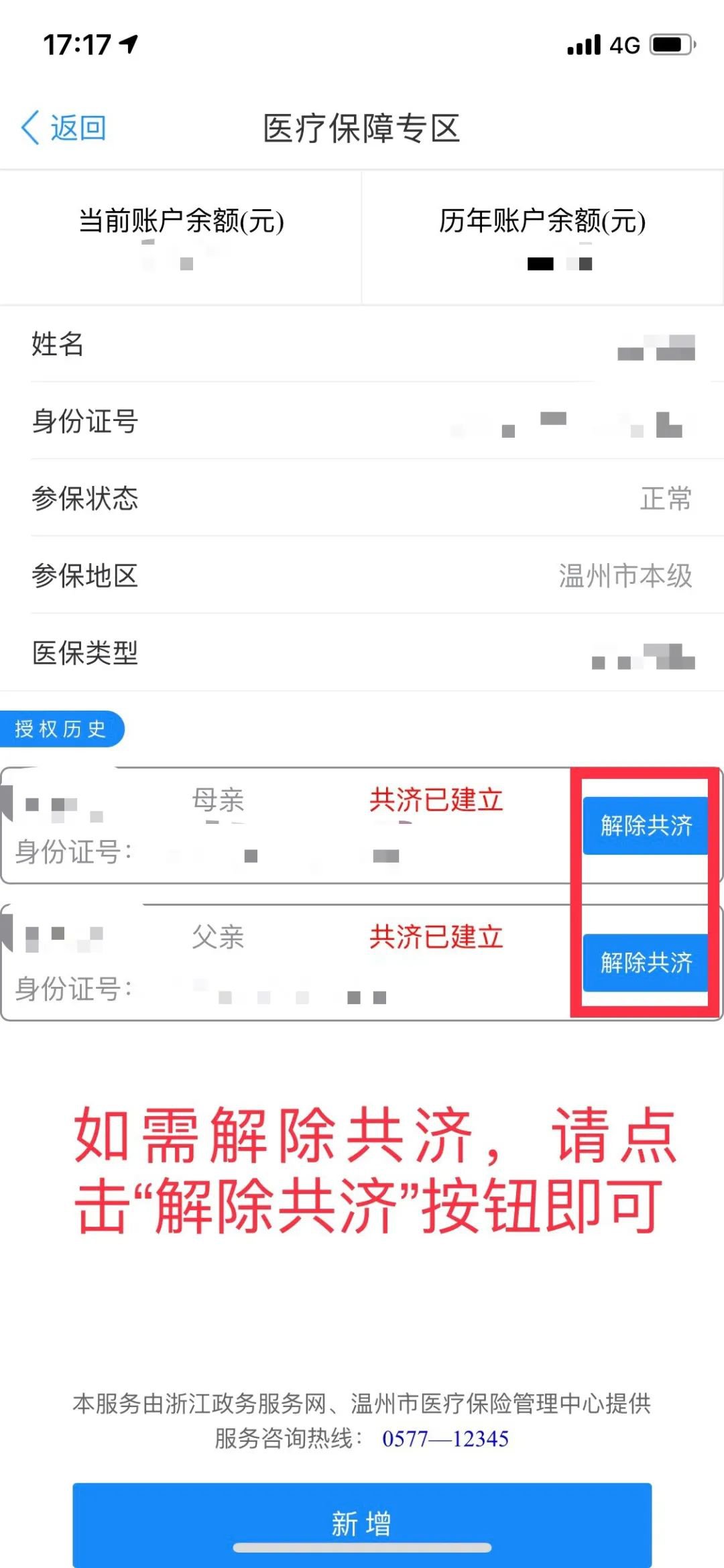 温州市医保家庭共济绑定与解除掌上操作流程