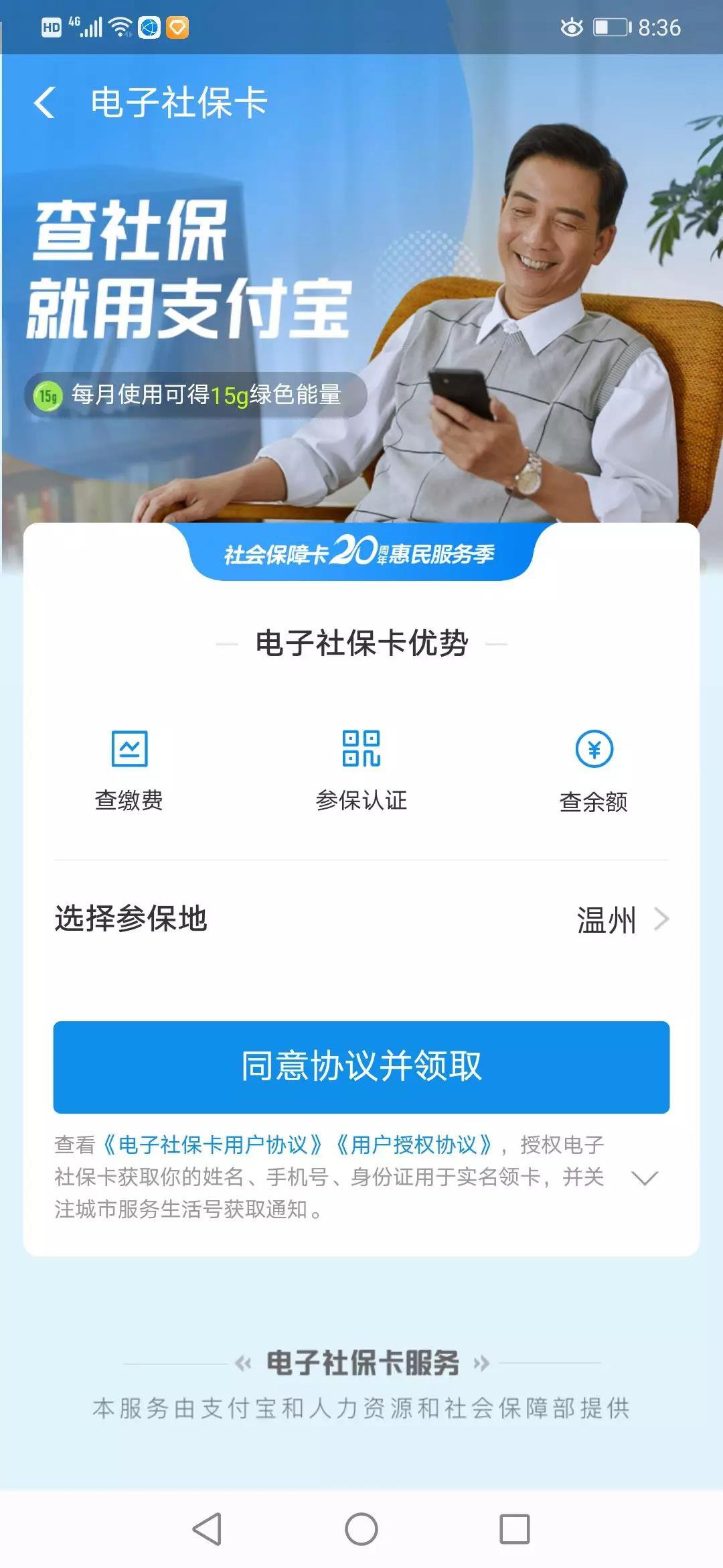 已在支付宝申领“电子社保卡”的市民,打开“温州健康码”,选择“就医/证照”,即可进入电子社保卡(含本人照片)页面。
