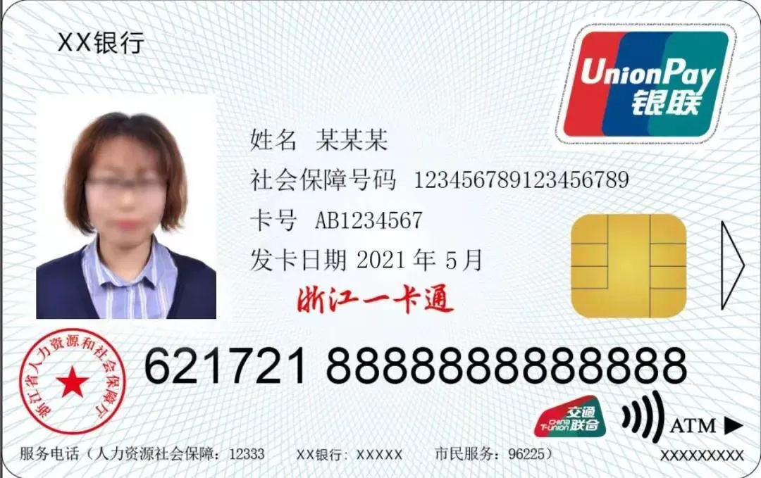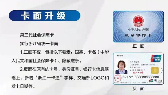全新上线的第三代社保卡,卡面布局、内容、颜色、字体等均采取全国统一标准,新增“浙江一卡通”标识。