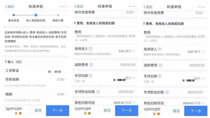 ②2019年换过工作、当年入职或自由职业者,则要选“自行填写”方式,逐项填报各项收入和扣除。