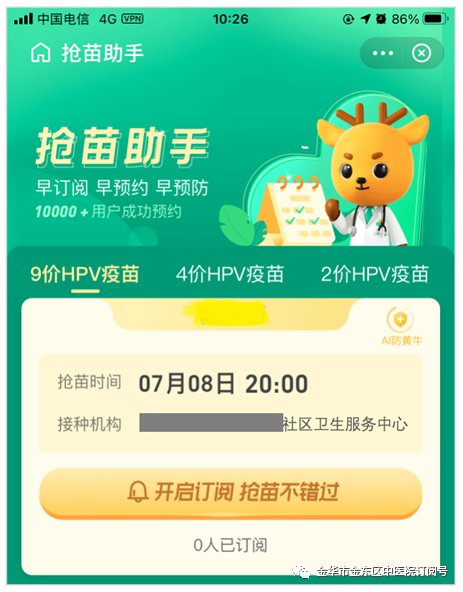 疫苗开放预约时订阅按钮将变为预约入口,点击进入