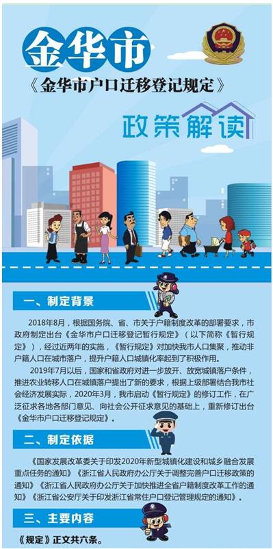 2018年8月,根据国务院、省、市关于户籍制度改革的部署要求,市政府制定出台《金华市户口迁移登记暂行规定》(以下简称《暂行规定》),经过近两年的实施,《暂行规定》对加快我市人口集聚,推动非户籍人口在城市落户,提升户籍人口城镇化率起到了积极作用。