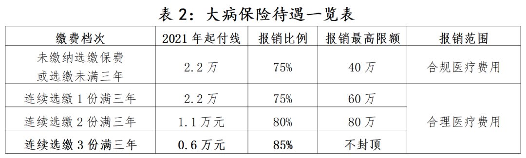 表2:大病保险待遇一览表