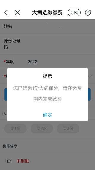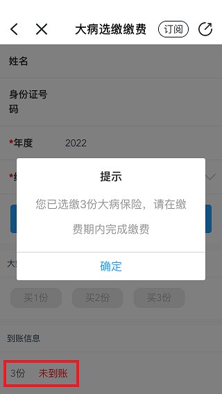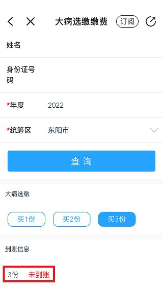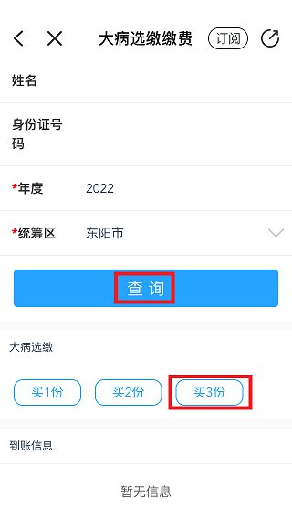4、再选择2022年度大病保险选缴保费的份数。点击查询后,再点击“买3份”