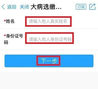 (1)进入医疗保障专区→点击“更多”后,在“大病选缴(2022)”中,选择“帮他人大病选缴缴费”,输入他人姓名,身份证号码,点击下一步