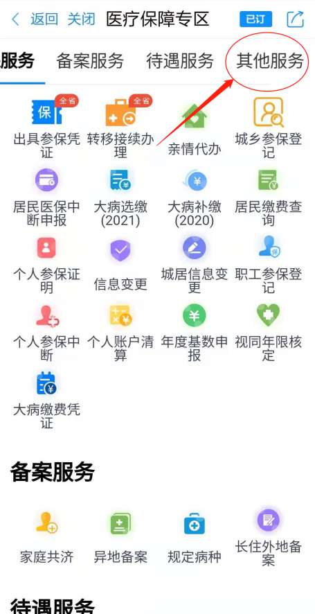 第三步:点击“其他服务”或者直接下拉找到“其他服务”。点击“其他服务”中的“大病缴费查询”。