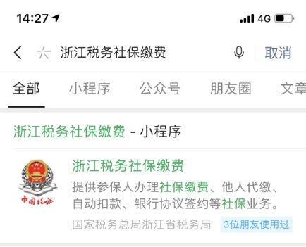打开微信,在小程序中搜索“浙江税务社保缴费”进入社保费自助缴费平台。