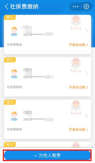 2.找到“我为自己缴”和“我帮他人缴”按钮(以“我帮他人缴”举例示范)