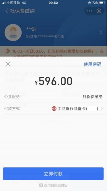 选择需要缴费的信息,点击“去支付”进入付款页面