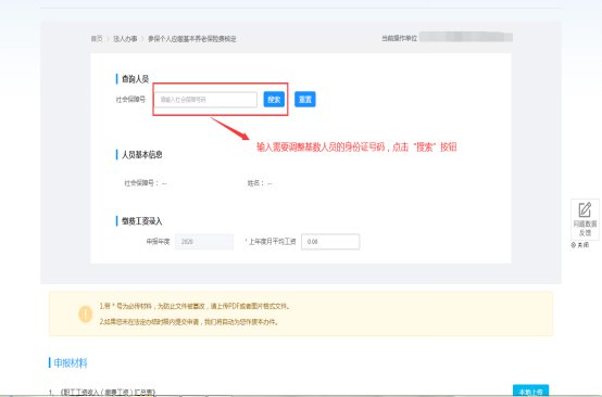 1、单个调整:点击“参保个人应缴基本养老保险费核定”→选择“按人录入”点击下一步→在社会保障号栏输入需要调整基数人员身份证号码后点击搜索→核对人员信息后在“上年度月平均工资”栏输入需要申报的缴费基数→确认无误后点击下一步按钮保存即可