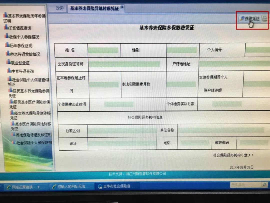 第四步,点开右上角的“获取凭证”再点击“打印凭证”。将两份凭证交至新参保地社保经办机构就可申请办理接续手续。