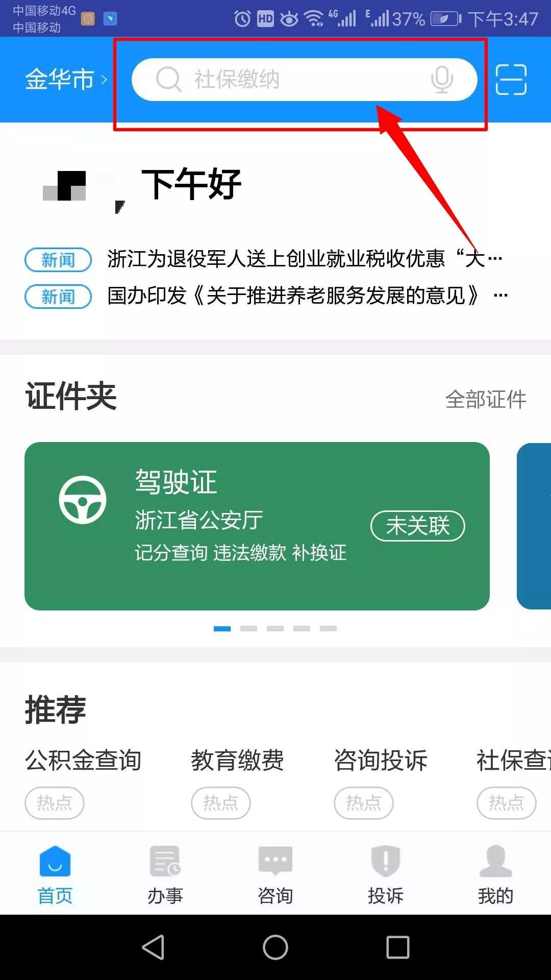 2.实名认证登录“浙里办”后,在搜索框输入“金华人社”。