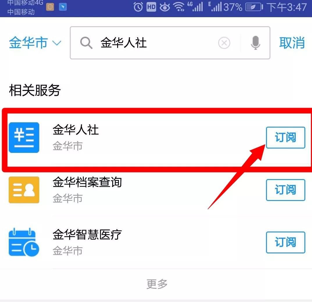3.在搜索结果列表中,选择金华人社并点击“订阅”。